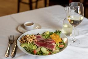 mixed greens, avocado, mandarin oranges, crispy noodles